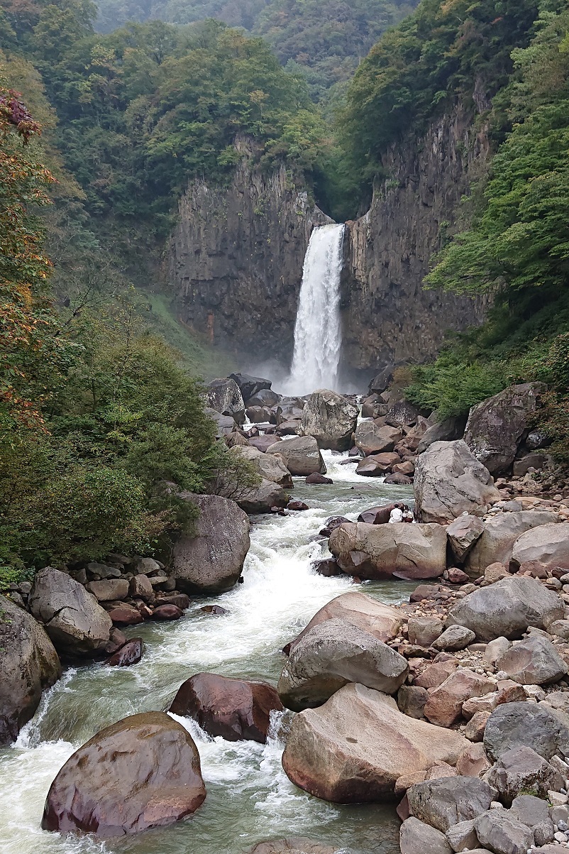 柱状節理の岩壁をくりぬいた様に流れ落ちる滝がとても迫力あります。