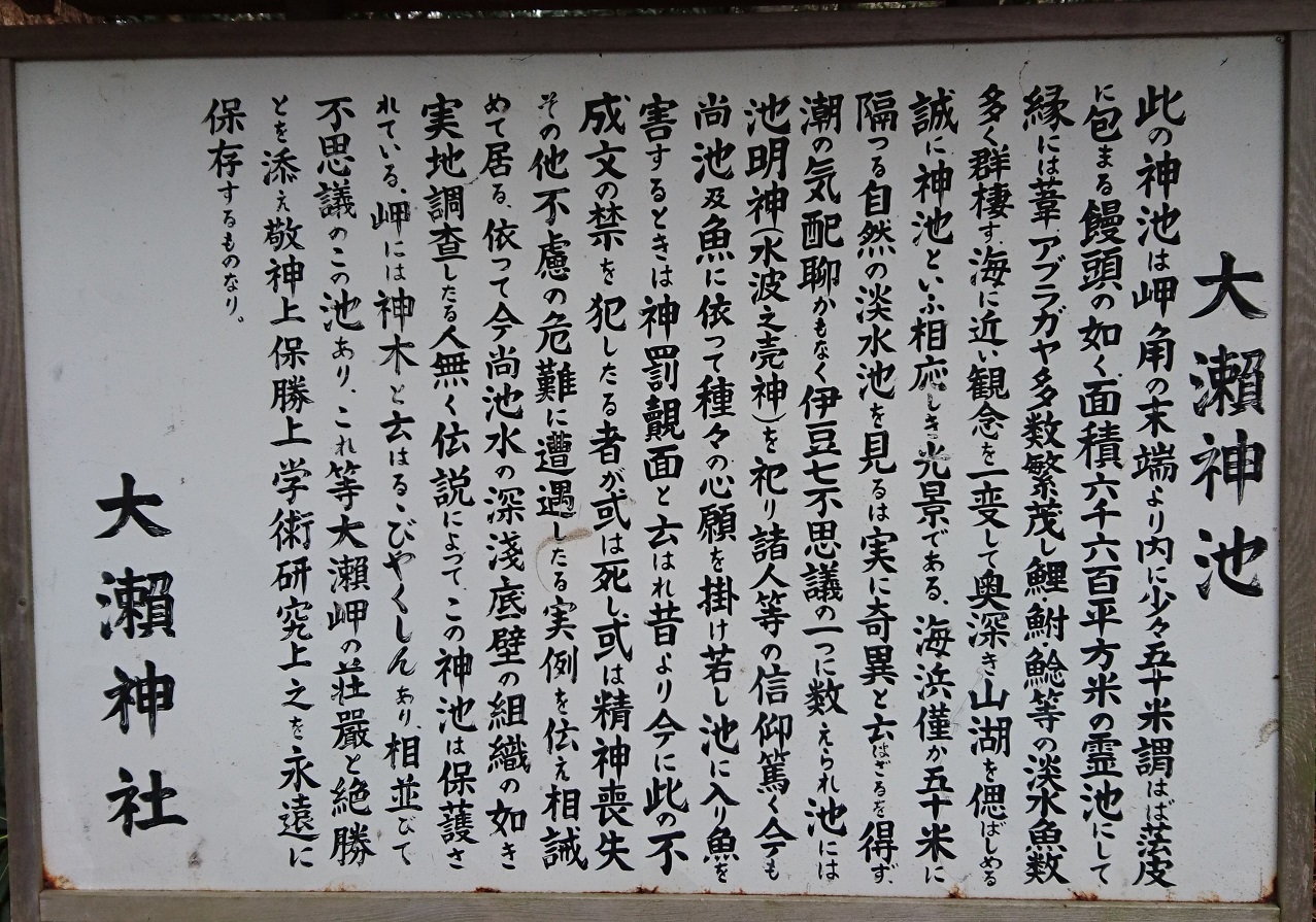 伊豆七不思議の一つ、周囲が海に囲まれた場所にあるにもかかわらず池が淡水で鯉などの淡水魚が生息している。不思議だね~。で、後の6つはなんだろう?
