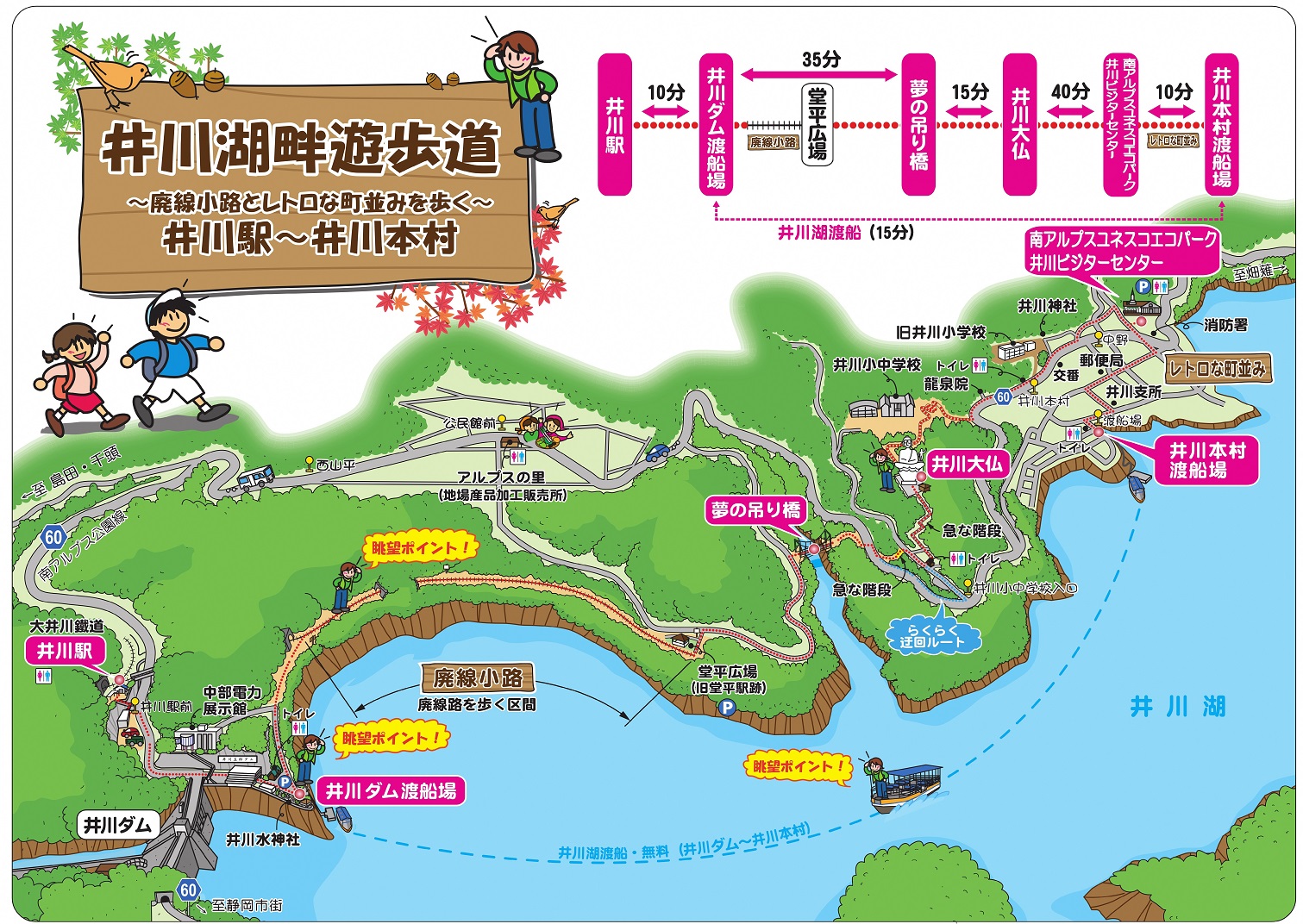 廃線小路という愛称で親しまれている井川湖畔を散策できる遊歩道。