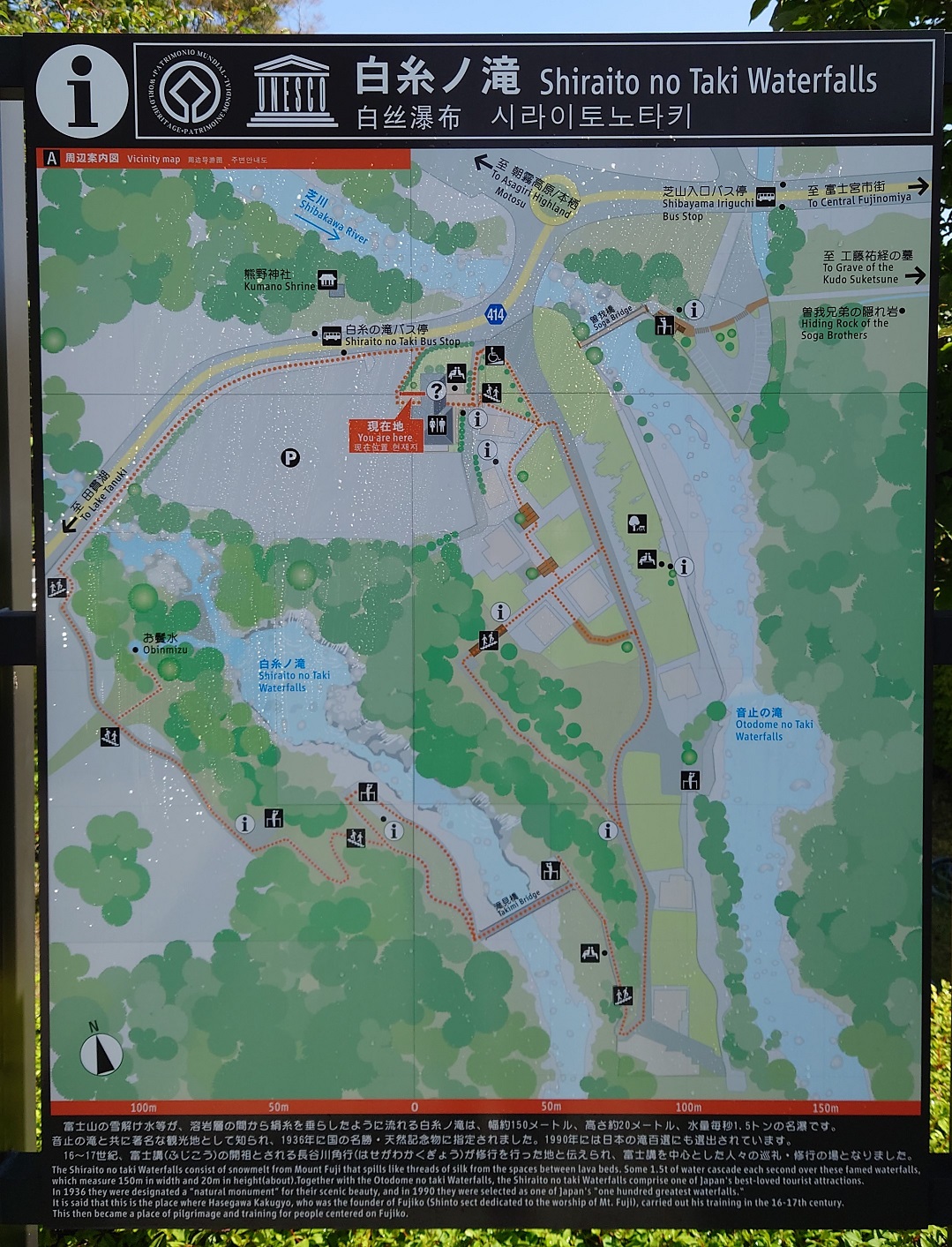 この辺りまで来ると滝が流れる音も聞こえて来て、その方向を覗き見ると白糸の滝が少し見え隠れして見えます。