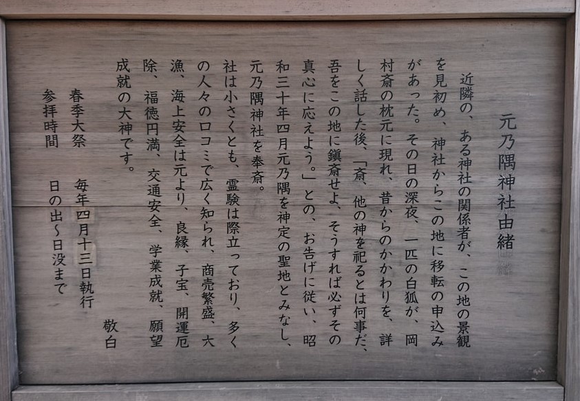 祀られている祠を背後に、白狐のパネルから顔を出して参拝の記念撮影。