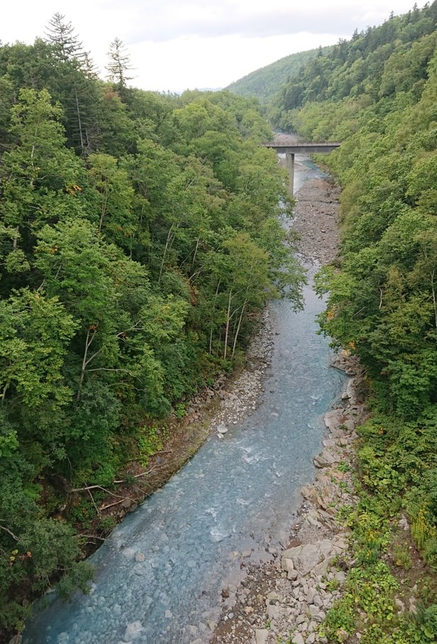 橋の上から眺めた美瑛川、別名ブルーリバー(青い川)と呼ばれ地域住民に親しまれている川である。