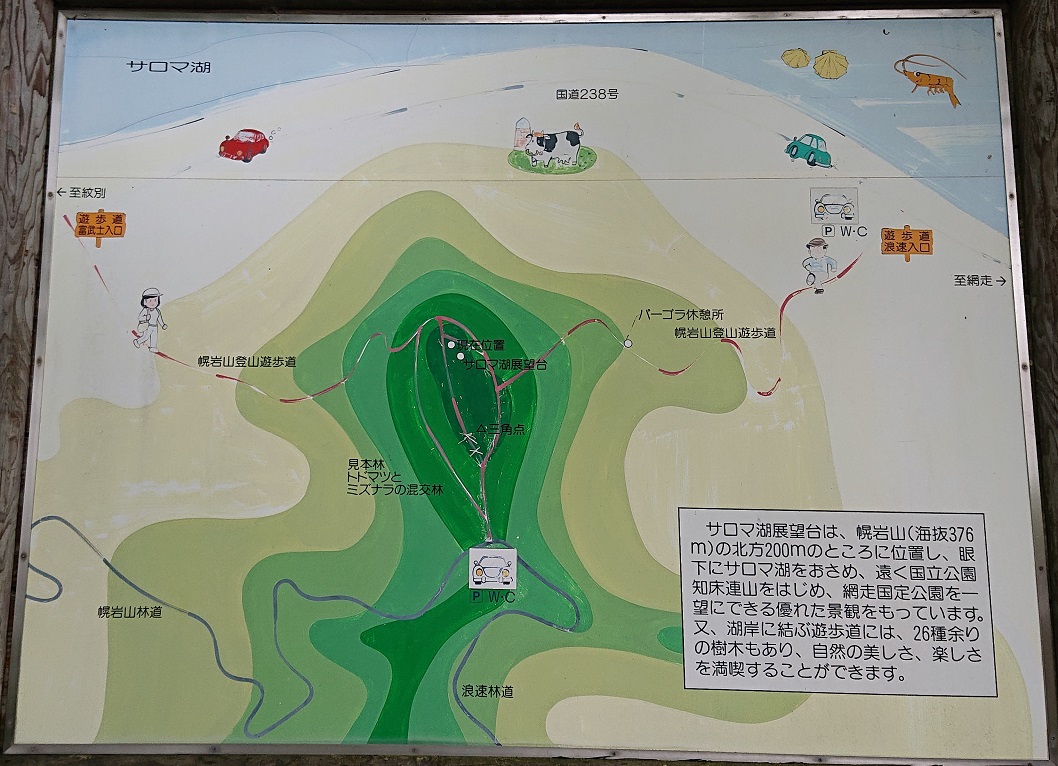 富武士登山道は全長約3.5kmのコースで、道の駅サロマ湖の辺りに登山道入口があるようだ。