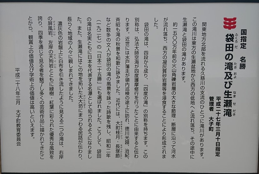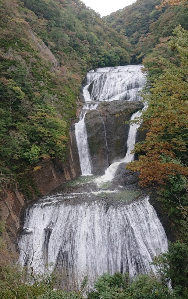 日本三名瀑のひとつ。高さ120m、幅73mの段瀑。