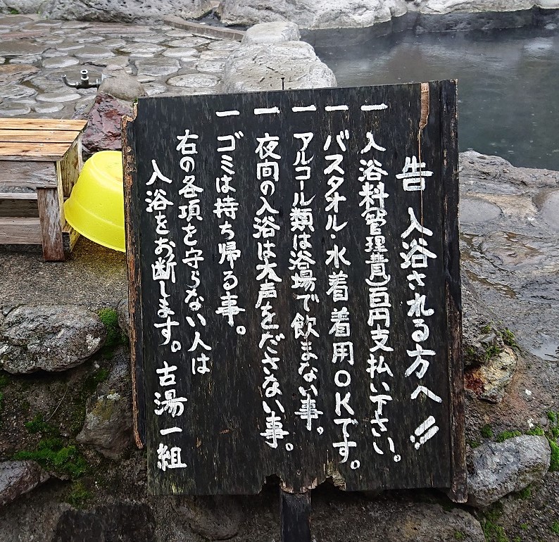 湯船の周りをシートで大きく囲っているので、他と違って外から見えにくい所かなと思ったら、すぐ横に橋が架かっていて上から丸見えでした。