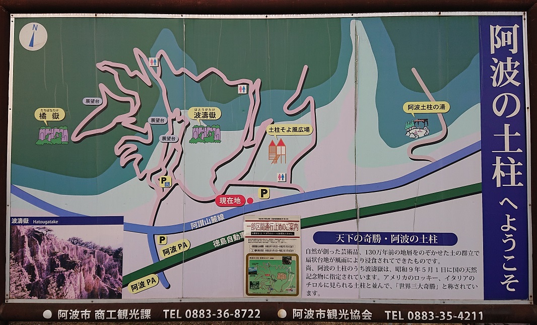 天然記念物の阿波の土柱へは、ここに車を停めて歩いて行く事になる。