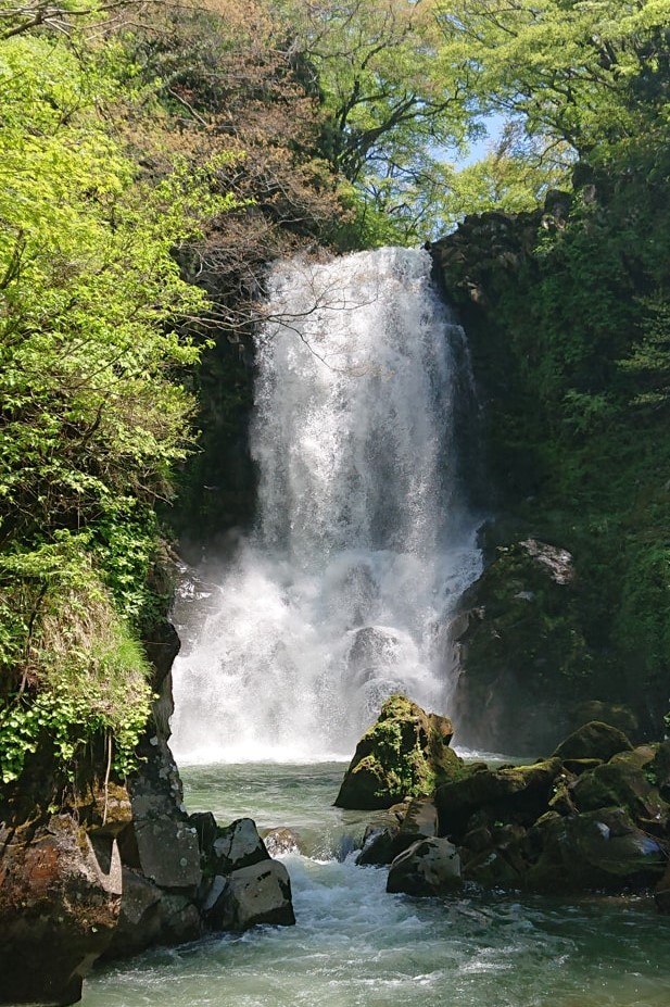 滝壺付近に比べるとやや離れた眺めになりますが、それでも十分に見応えがあります。
