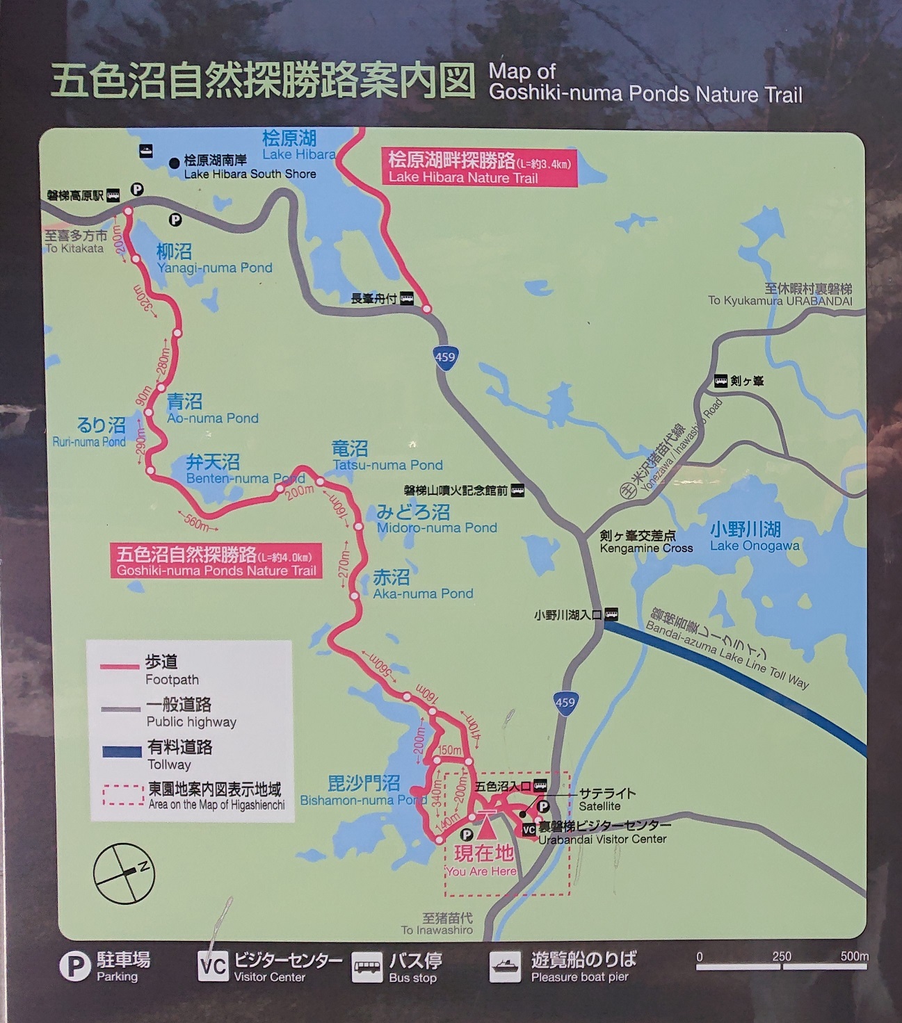 ・駐車場 裏磐梯ビジターセンター、または五色沼入口観光プラザ