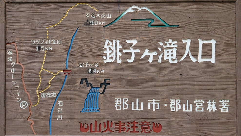 磐梯熱海IC(磐越道)から県道24号線を通りおよそ7.5km進むと、郡山石筵ふれあい牧場入口があるので、その入口を入り、その先を直進して行き道なりに進むと銚子ヶ滝入口に到着する。 - ◇ 駐車場 ◇