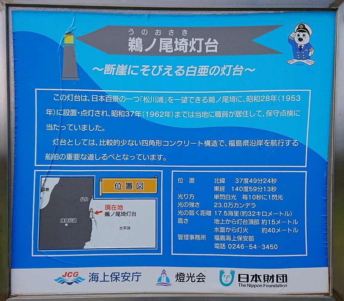 灯台が建つ鵜ノ尾埼からは日本百景の一つ「松川浦」を一望出来る。