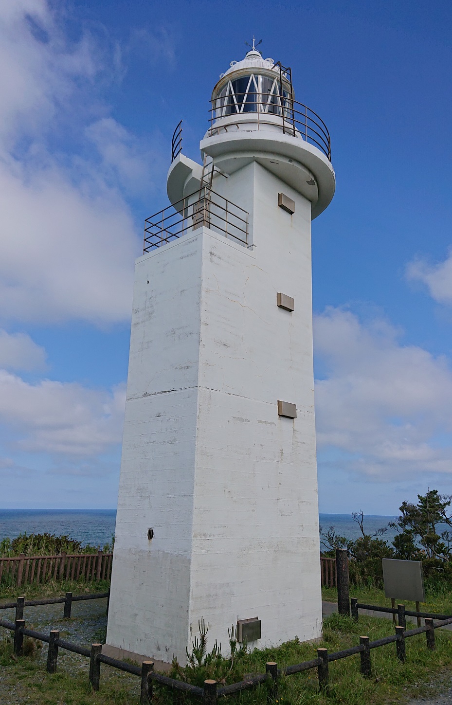 分かれ道から今度は灯台の方へと歩いて行くと、間もなくして四角い白亜の灯台が見えて来ます。