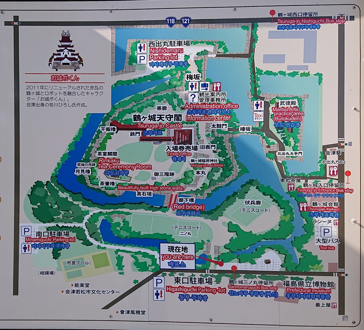会津若松IC(磐越道)から国道49号線を経由して国道118号線を通り、総距離およそ6.1km。 - ◇ 駐車場 ◇