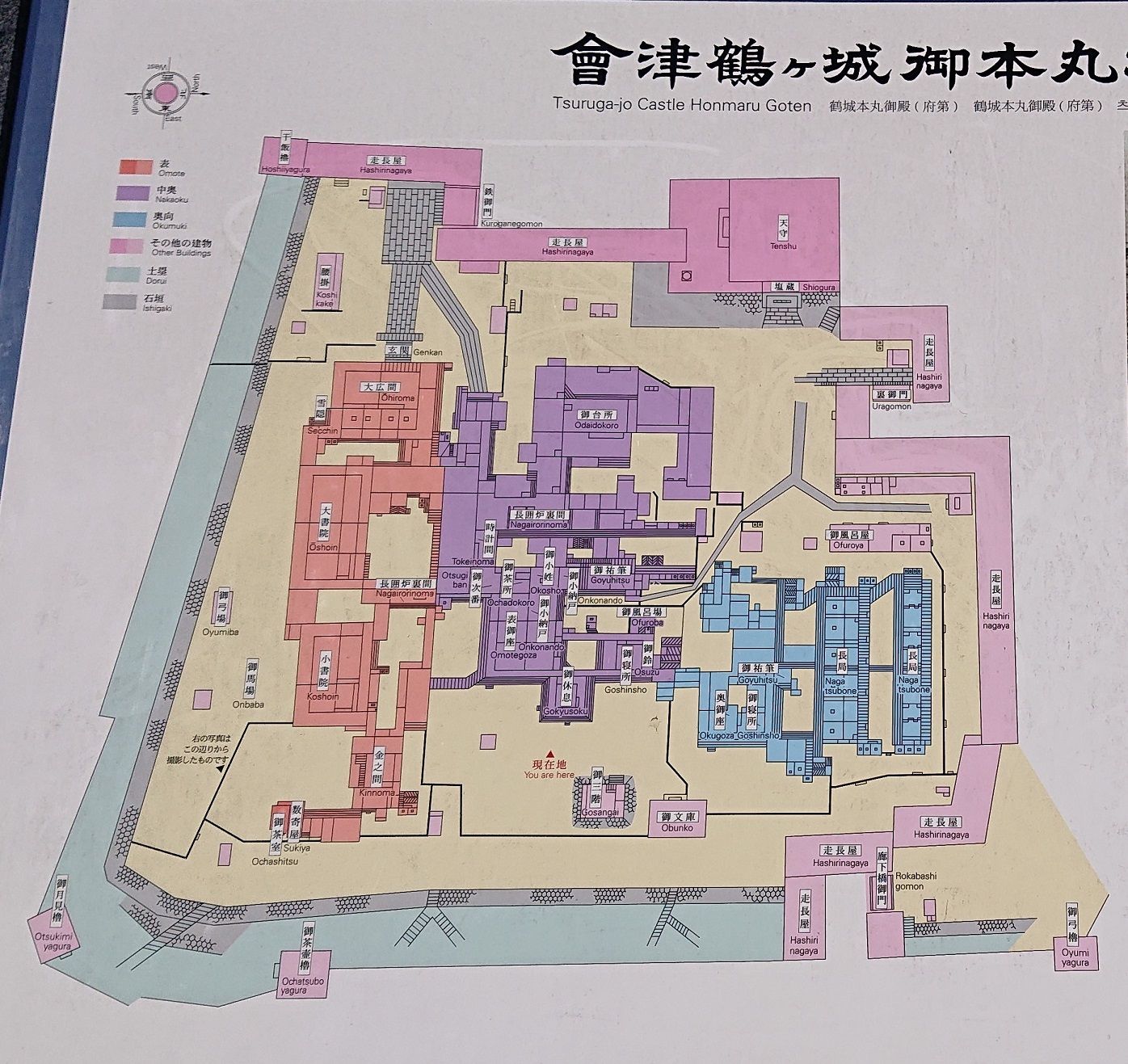 左側正面に見える門は帯廊から本丸に通じる表門で、扉や柱が鉄で覆われている事から鉄門とも呼ばれるそうです。